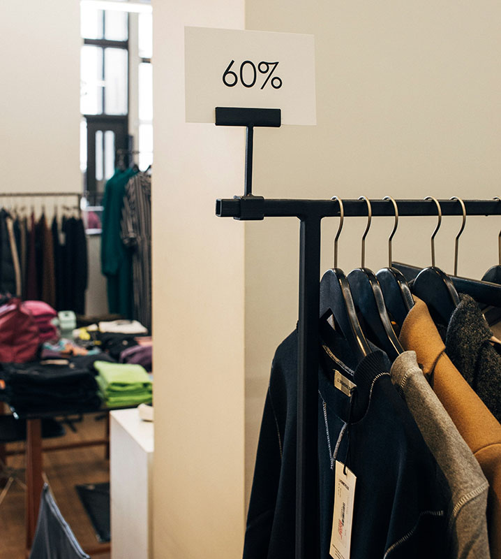 Outra dica, é trabalhar com pontos focais estratégicos, utilizando as paredes do fundo da loja para criar pontos de atração com araras e prateleiras, destacando produtos específicos ou promoções irresistíveis.